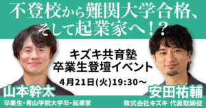 元不登校が語る「高校中退後のリアル」「再起のきっかけには共通点があった!」不登校支援15年【キズキ代表×卒業生】対談イベント開催