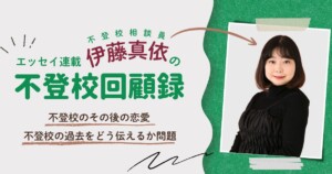 2026.04.01連載 【不登校回顧録】気になるけど聞けない”不登校のその後の恋愛”体験談「彼氏に不登校の過去をどう伝えるか」悩んだ私の決断by伊藤真依 不登校の渦中では、先が見えず、立ち止まっている時間がもったいないように感じることがあります。 しかし、不登校の時間の中で得られる学びや気づきは多く、決...