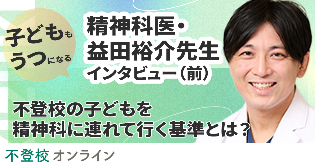親御さんの、そうした「よくあるお悩み・疑問」に応えるため、ウェブメディア「不登校オンライン」は、精神科医の益田裕介先生に「不登校と心療内科・精神科」についてのインタビューを実施しました。